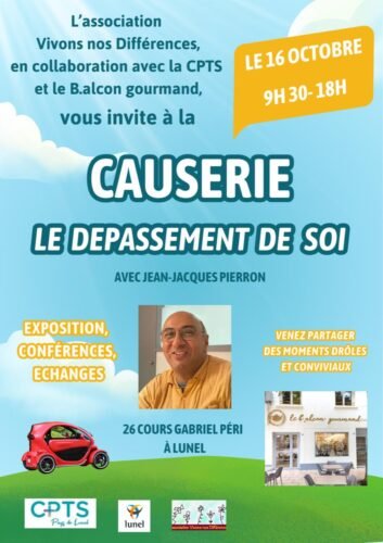 L’association » Vivons nos différences », en coopération avec la CPTS du Pays de Lunel et le B.alcon gourmand vous invite à une Causerie sur le dépassement de soi, avec jean-Jacques Pierron.